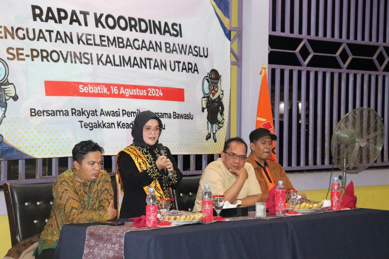 Sebatik – Bawaslu Kaltara_Anggota Bawaslu Republik Indonesia Lolly Suhenty menghadiri kegiatan Rapat Koordinasi Penguatan Kelembagaan Bawaslu se-Provinsi Kalimantan Utara yang diselenggarakan oleh Bawaslu Kaltara di cafe Hasanah Sebatik Kabupaten Nunukan. (16/08/2024)