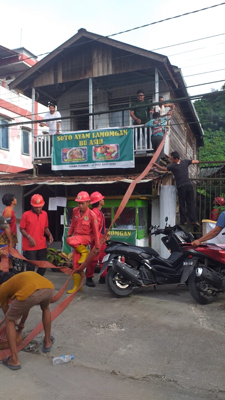 Api sempat terlihat membesar di bagian belakang rumah, namun berkat kerja sama warga dan Damkar, si jago merah berhasil dipadamkan sebelum merambat ke bangunan lain di sekitarnya.