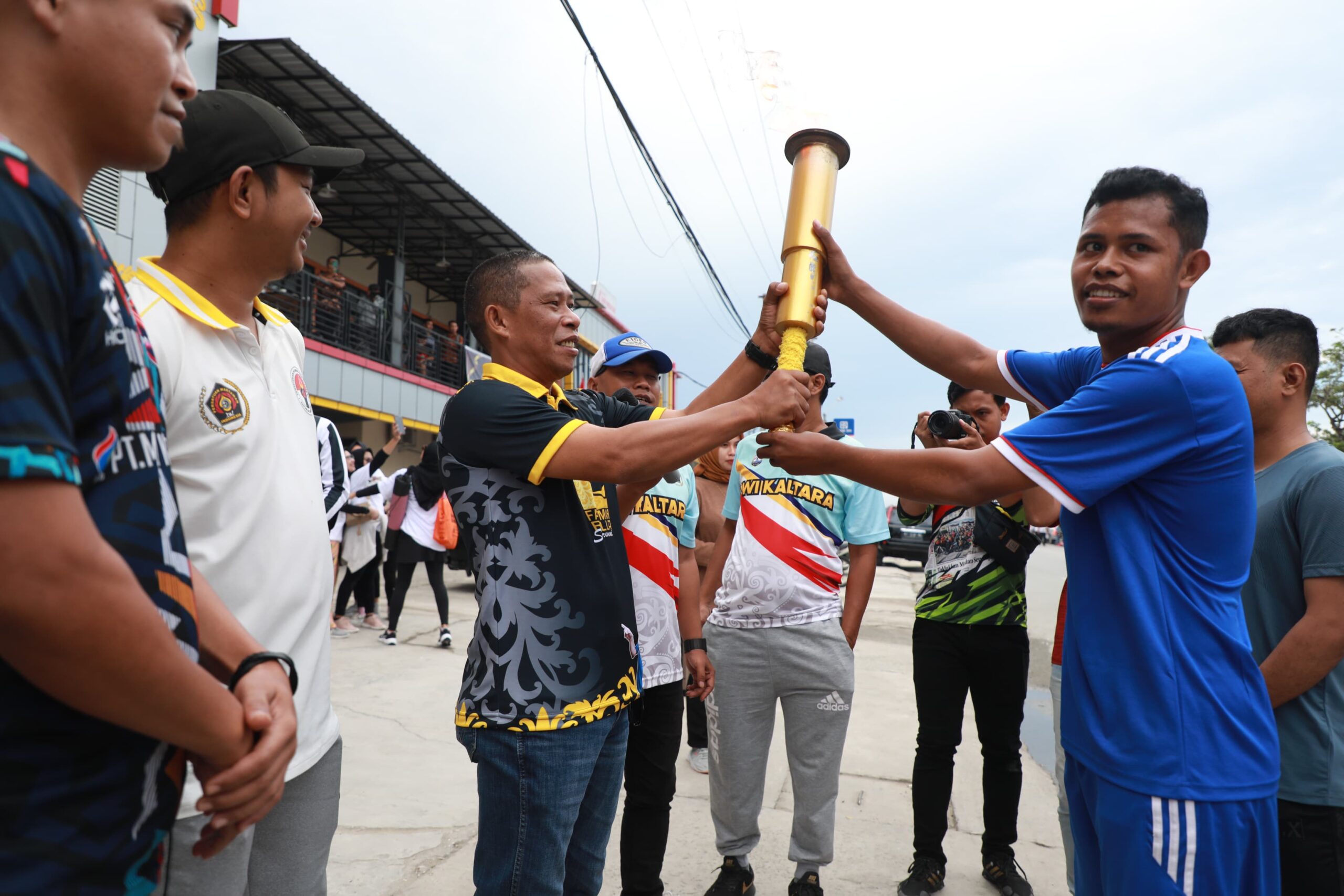 Tanjung Selor – Kirap obor Pekan Olahraga Wartawan Daerah (Powarda) I Kaltara sukses dilaksanakan di Tanjung Selor Kabupaten Bulungan, Ahad pagi (3/12/2023).