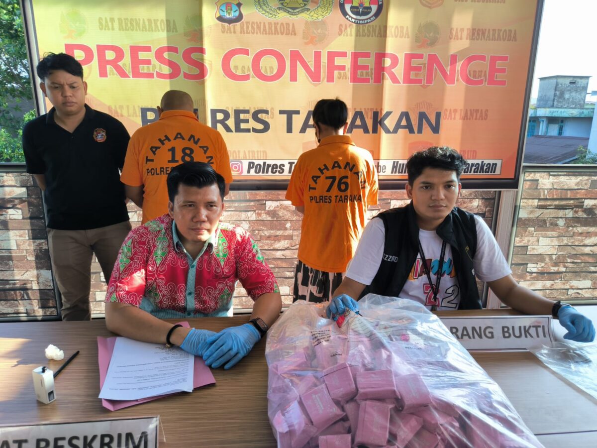 Kapolres Tarakan, AKBP Ronaldo Maradona T.P.P. Siregar,S.H.,S.I.K melalui Kasat Reskrim Polres Tarakan, AKP Randhya Sakhtika Putra,S.T.K.,S.I.K.,M.H, saat konferensi pers dengan media menjelaskan. Dalam perkara ini terdapat 16 dus kosmetik ilegal yang berhasil diamankan oleh unit Tipiter.