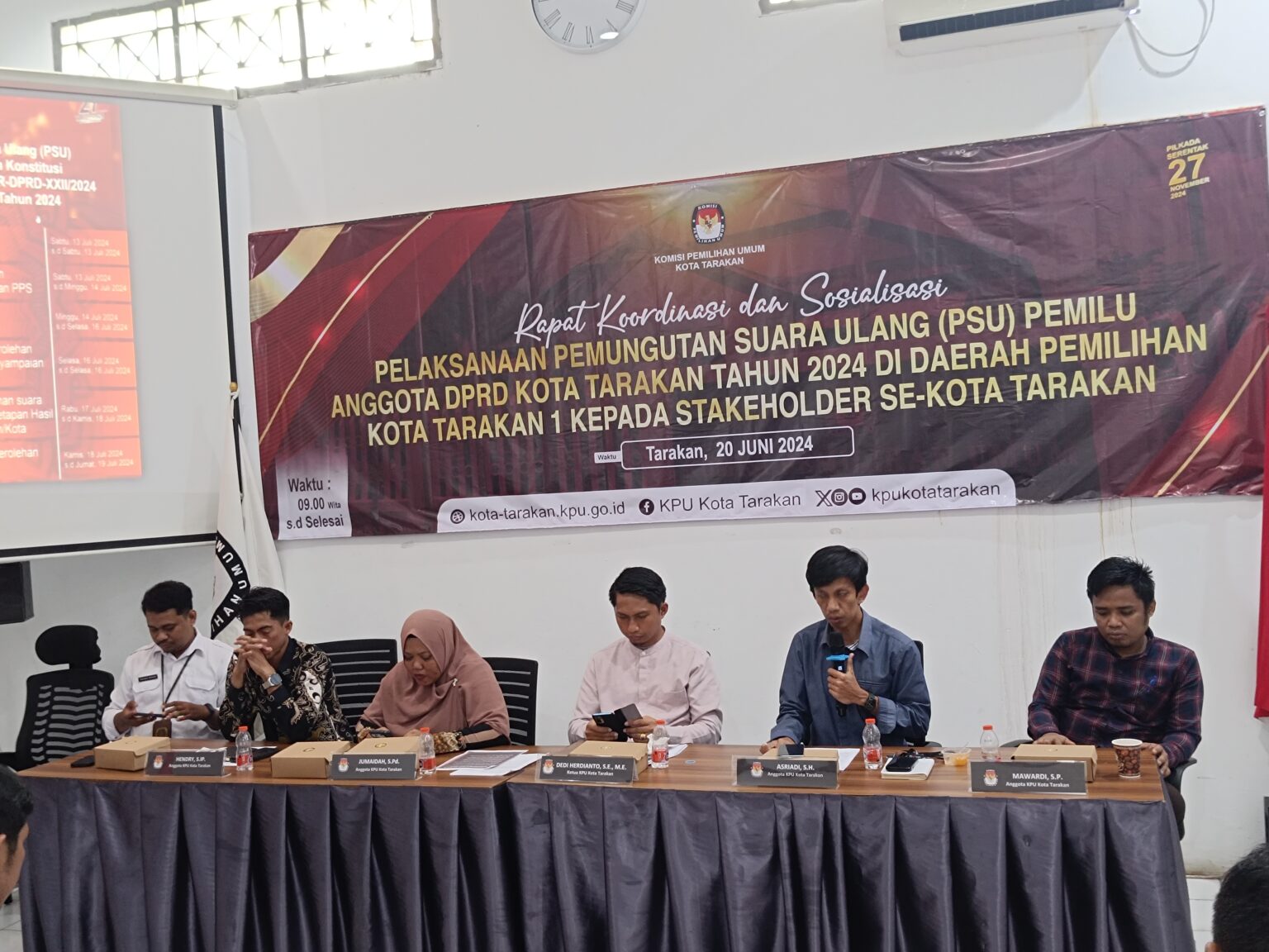 Ketua KPU Tarakan, Dedi Herdianto, menyatakan bahwa pertemuan tersebut bertujuan untuk memberikan sosialisasi kepada masyarakat, terutama yang berada di Dapil 1 Tarakan Tengah, lokasi yang telah ditetapkan oleh MK. Kegiatan ini juga sebagai langkah awal dalam sosialisasi PSU yang akan dilaksanakan di 194 TPS Dapil 1 Tarakan Tengah pada 13 Juli 2024.