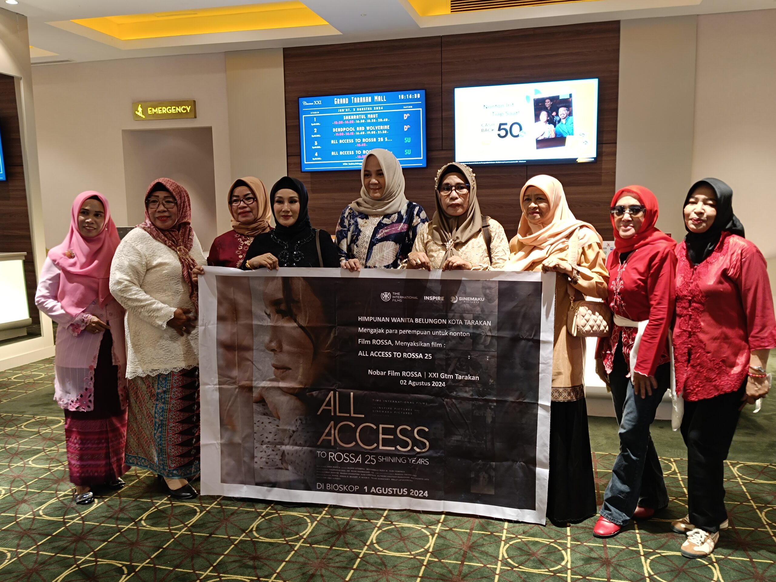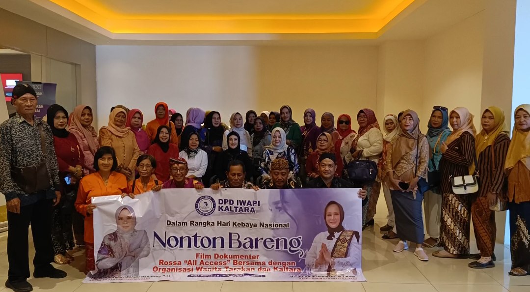 TARAKAN – Keluarga Besar Dewan Pengurus Daerah Ikatan Wanita Pengusaha Indonesia (DPD IWAPI) Kalimantan Utara menggelar acara nonton bareng (nobar) film dokumenter berjudul “All Access to Rossa 25 Shining Years” di Studio XXI Grand Tarakan Mall. Acara ini diadakan dalam rangka memperingati Hari Kebaya Nasional.