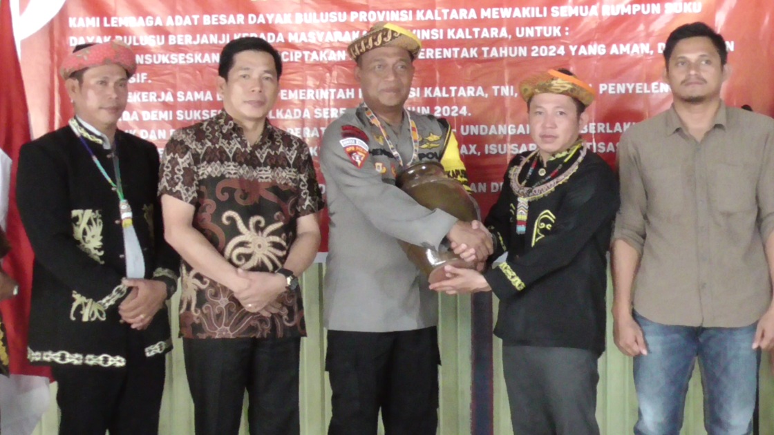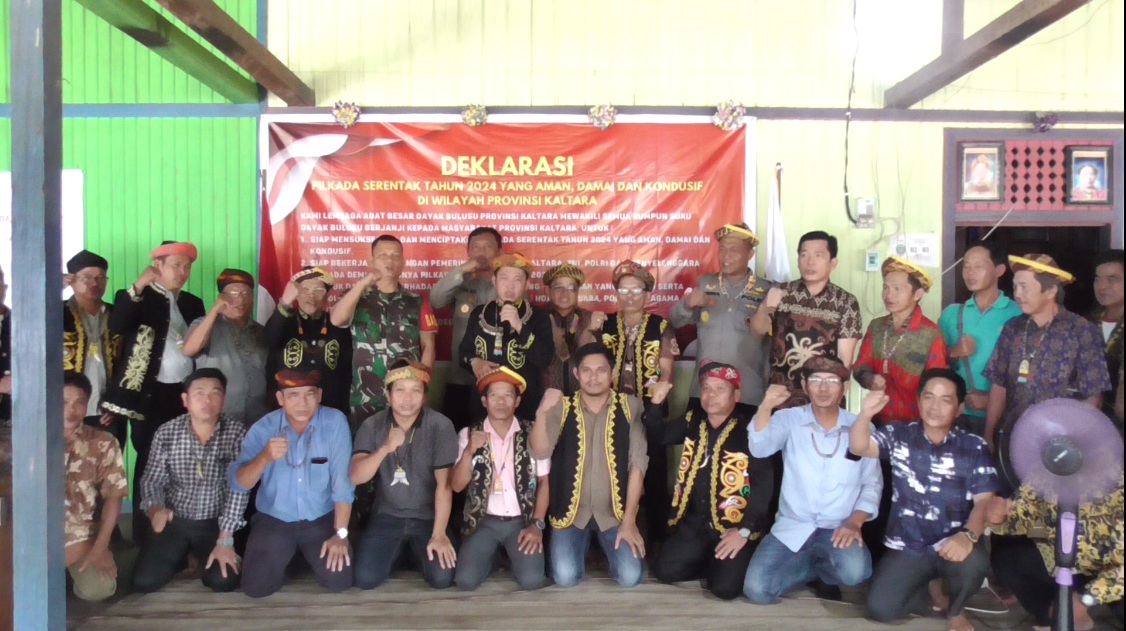 Deklarasi, Pilkada Serentak Tahun 2024 Dibacakan Langsung Oleh Kepala Adat Besar Dayak Bulusu Kaltara, Sebagai Berikut “Kami Lembaga Adat Besar Dayak Bulusu Provinsi Kaltara Mewakili Semua Rumpun Suku, Dayak Bulusu Berjanji Kepada Masyarakat Provinsi Kaltara, 1. Siap Mensukseskan Dan Menciptakan Pilkadaserentak Tahun 2024 Yang Aman, Damai Dan Kondusif, 2. Siap Bekerja Sama Dengan Pemerintah Provinsi Kaltara, Tni-Polri Dan Penyelenggara Pilkada Demi Suksesnya Pilkada Serentatahun 2024, 3. Tundur Dan Patuh Terhadap Peraturan Perundang-Undangan Yang Berlaku Serta Menolak Segala Bentuk Ujaran Kebencian, Berita Hoak, Isu Sara Politisasi Agama Dan Politik Identitas, 4. Menolak Segala Paham Dan Ideologi Yang Bertentangan Dengan Pancasila Dan Uud 1945, (Hnd)