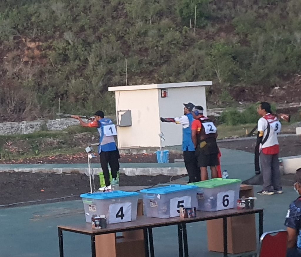 Medali emas diraih atlet Kaltara atas nama Nasruddin dengan total 30 poin di nomor skeet man individu di Lapangan Tembak Silas Papare, Jayapura, Rabu (13/10/2021).
