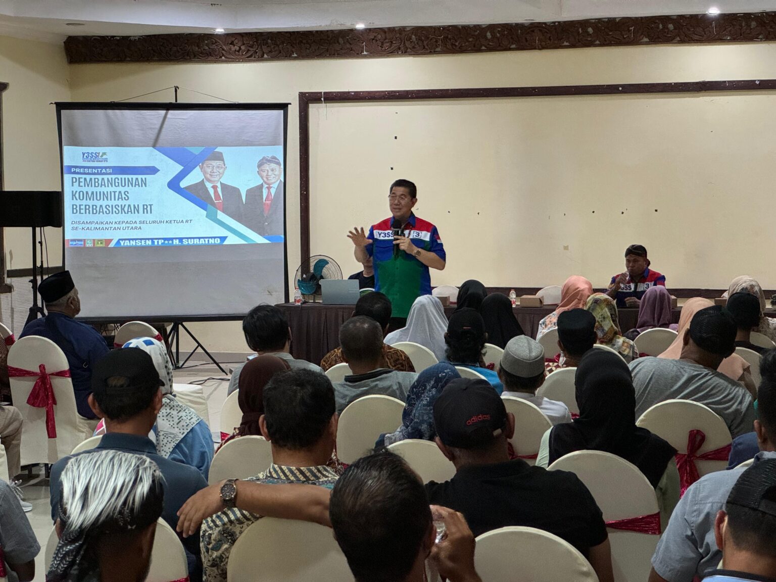 TARAKAN – Di forum rembuk RT paslon nomor urut 3, Yansen TP-Suratno (YESS) menyampaikan visi-misi dan program yang bakal dicanangkan. Dihadapan ratusan ketua RT YESS menegaskan komitmennya dalam memberikan dukungan pembangunan hingga ke tingkat RT, salah satunya alokasi dana RT minimal 100 juta per tahun untuk seluruh RT di Kaltara.