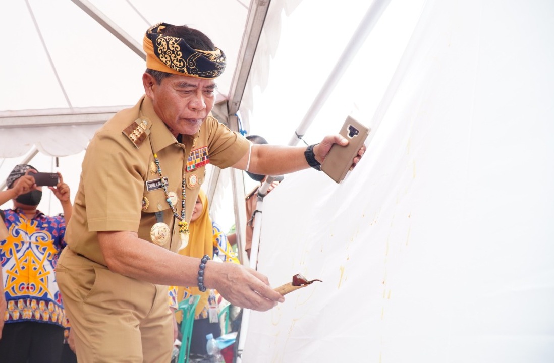 Gubernur bahkan ikut membatik melakukan teknik “Cires” atau Ciprat dan Gores di stand milik SLB Negeri Tarakan.