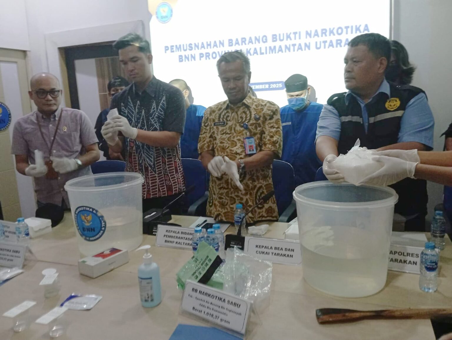 BNNP Kaltara memastikan barang bukti sabu seberat 1.018,37 gram dimusnahkan sesuai ketentuan Undang-Undang Nomor 35 Tahun 2009 tentang Narkotika. Sebelumnya, sebagian kecil barang bukti disisihkan untuk kebutuhan uji laboratorium dan pembuktian di pengadilan. (****)