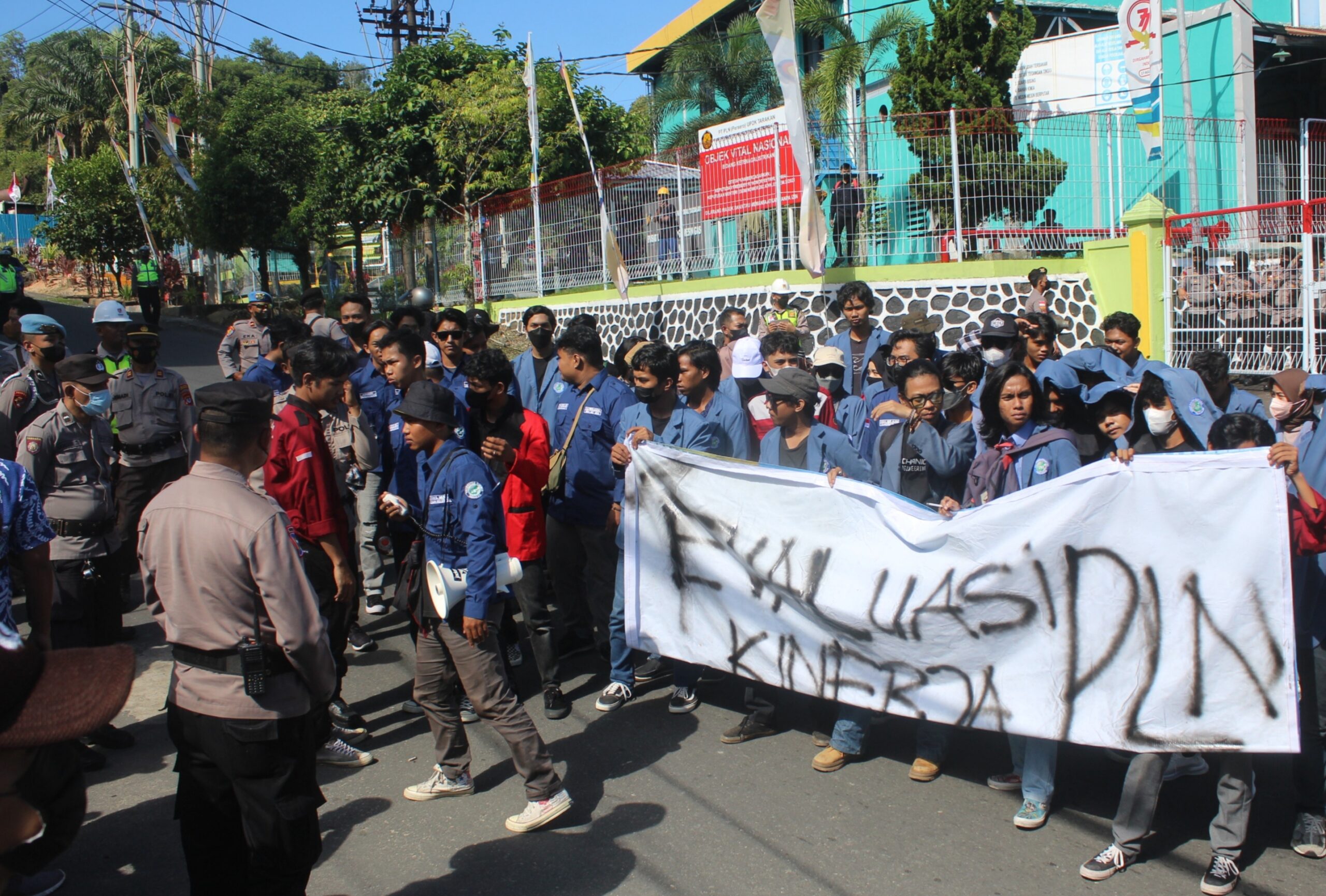 Karena aksi tersebut membuat arus lalu lintas di depan Kantor PLN terhambat.