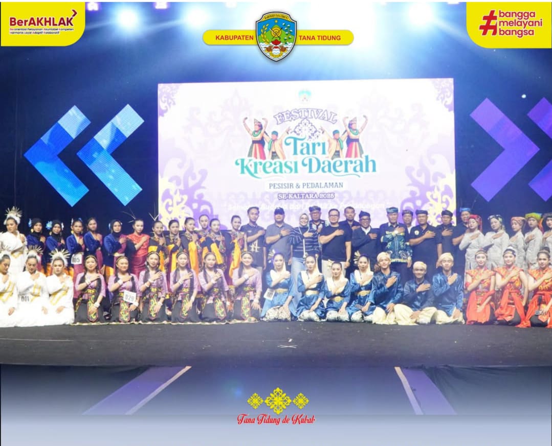 TANA TIDUNG – Suasana RTH Joesoef Abdullah kembali semarak pada Minggu malam (23/11/2025) dengan berlangsungnya Lomba Tari Kreasi Daerah Pesisir dan Pedalaman se-Provinsi Kalimantan Utara. Bupati Tana Tidung hadir langsung menyaksikan jalannya perlombaan bersama Anggota DPRD Provinsi Kalimantan Utara yang juga Ketua TP PKK Kabupaten Tana Tidung, Sekda, para Asisten, Kepala OPD, Ketua Dharmawanita Tana Tidung, serta tokoh masyarakat.