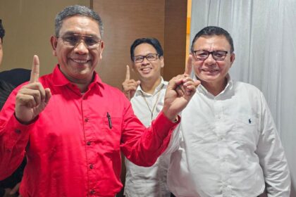 TARAKAN - Pakai kemeja merah putih pasangan Sulaiman-Adri Patton tampil berbeda. "Kami…