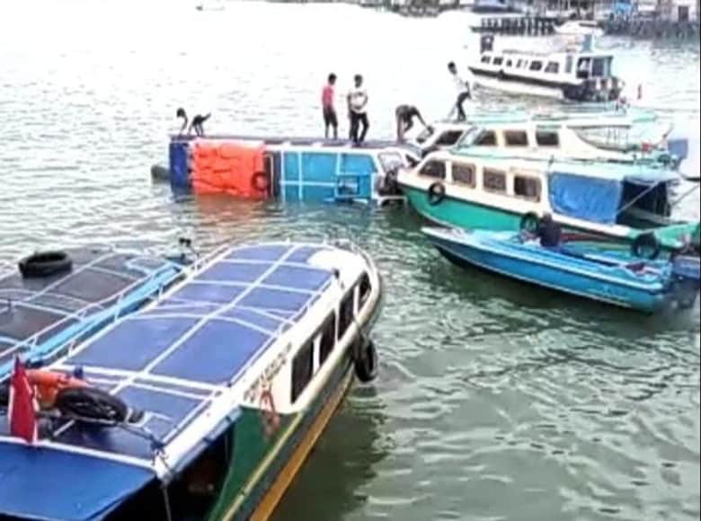 Diduga Kelebihan Muatan, Speed Boat Non Reguler Kargo Terbalik