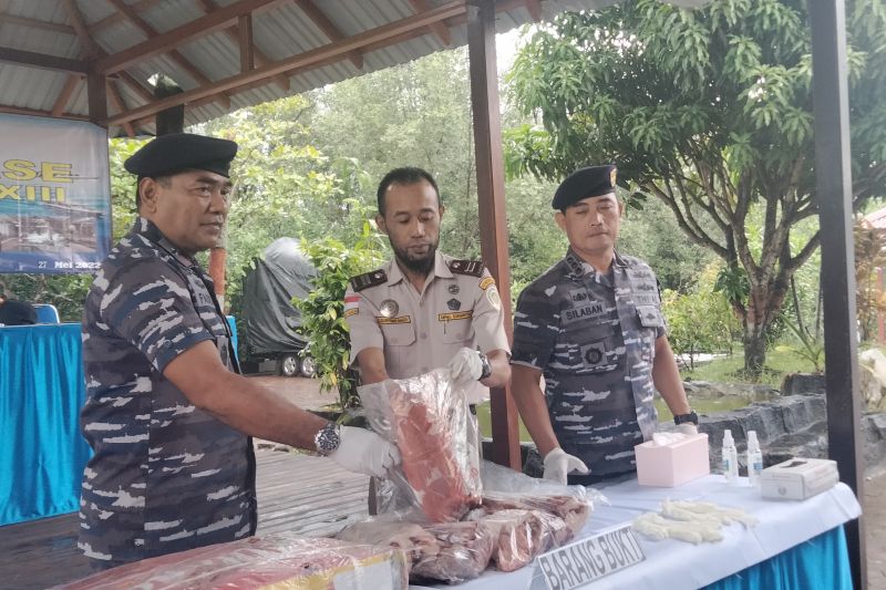 TARAKAN - Lantamal XIII Tarakan berhasil mengamankan 380 Kilogram daging merk alana…