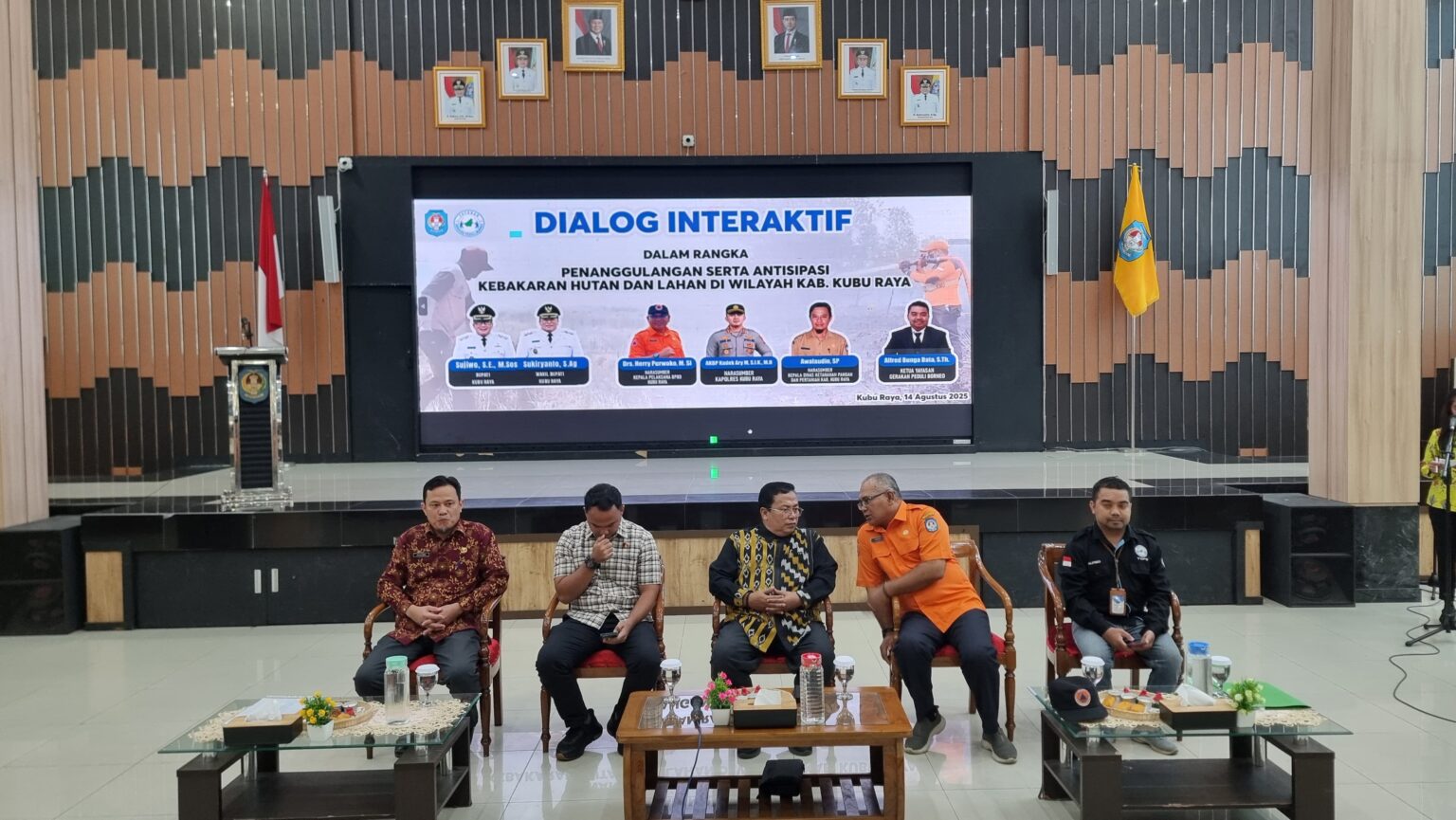 BorneoNewsJournalist.co.id, Kubu Raya – Pemerintah Kabupaten Kubu Raya menggelar kegiatan dialog interaktif bertema “Penanggulangan serta Antisipasi Kebakaran Hutan dan Lahan di Wilayah Kabupaten Kubu Raya” pada Kamis (14/8) pagi di Ruang Aula Kantor Bupati Kubu Raya. Kegiatan ini diikuti sekitar 100 peserta, terdiri dari Camat, Kepala Desa, Masyarakat Peduli Api (MPA), kelompok tani, serta relawan pemadam kebakaran.