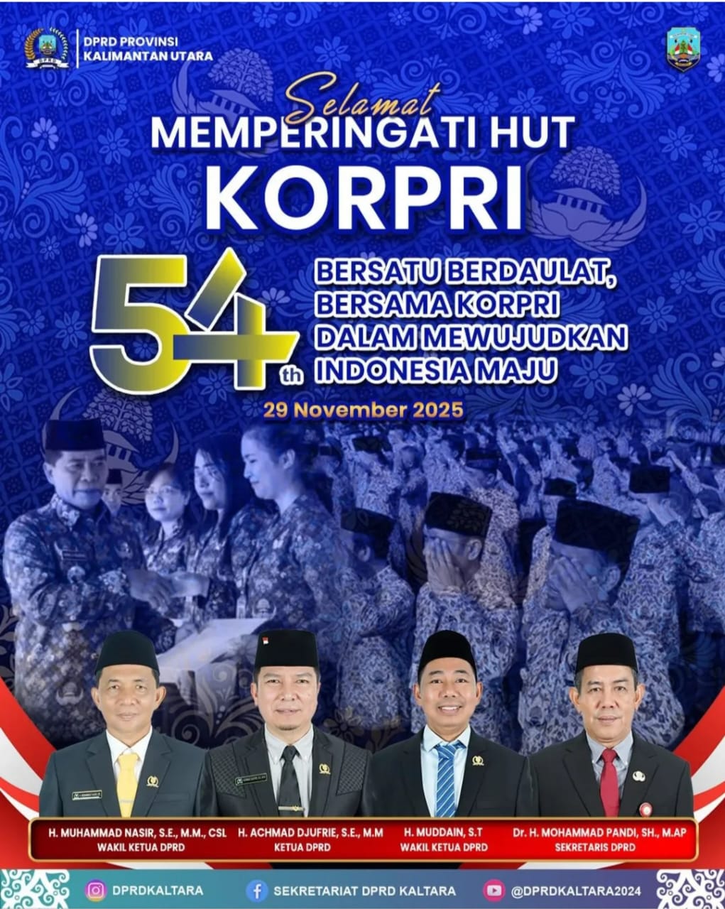 Peringatan HUT ke-54 KORPRI tahun ini menjadi momen refleksi sekaligus motivasi bagi ASN untuk memperkuat komitmen dalam memberikan pelayanan publik yang responsif, transparan, dan berintegritas tinggi. DPRD Kaltara juga berharap agar semangat KORPRI tetap menjadi kekuatan penting dalam mempercepat pembangunan di Provinsi Kalimantan Utara.(****)