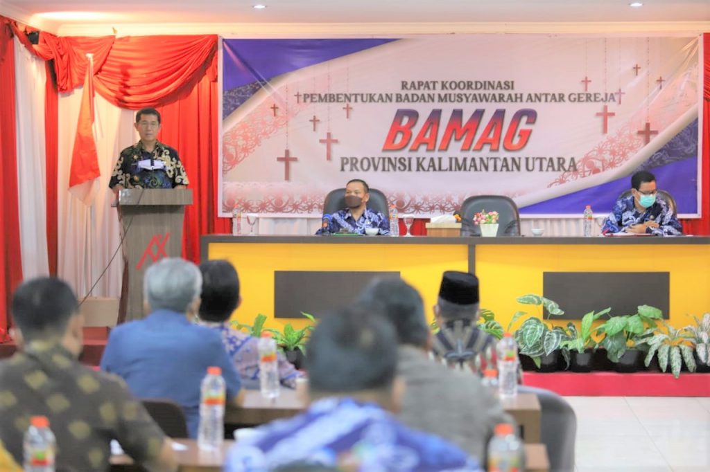 Tanjung Selor – Mendapat dukungan dari Pemerintah Provinsi (Pemprov) Kalimantan Utara (Kaltara), Kantor Wilayah Kementerian Agama Provinsi Kaltara menggelar rapat koordinasi dalam rangka pembentukan Badan Musyawarah Antar Gereja (BAMAG) tingkat Provinsi Kaltara pada Kamis (20/1).