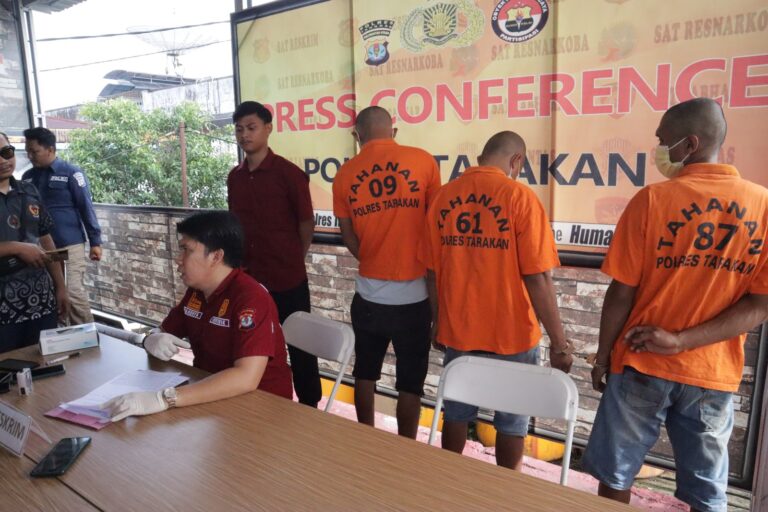 Kapolres Tarakan AKBP Ronaldo Maradona T.P.P Siregar, S.H.,S.I.K melalui Kasat Reskrim Polres Tarakan AKP Randhya Sakthika Putra, S.T.K.,S.I.K.,M.H menjelaskan kronologis kejadian kepada awak media pada saat konferensi pers, Kamis 18 Januari 2024.
