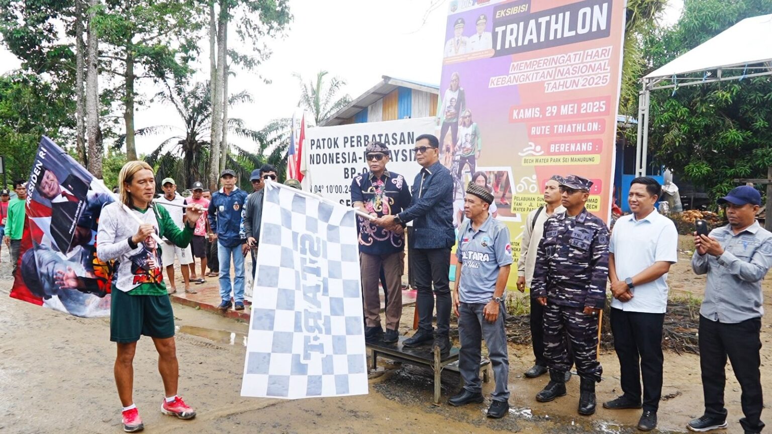 NUNUKAN – Gubernur Kalimantan Utara (Kaltara) Dr. H. Zainal A. Paliwang, S.H., M.Hum., membuka sekaligus melepas saudara Iman, yang dikenal dengan Sapaan (Messi), dalam Eksibisi Triathlon Provinsi Kaltara tahun 2025, berlangsung di Patok dua perbatasan Indonesia – Malaysia, Sebatik Tengah, Kabupaten Nunukan, Kamis (28/5).