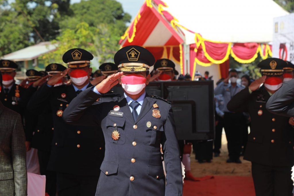 Sebatik-Peringatan Hari Bhakti Imigrasi ke-72 dilakukan sedikit berbeda dengan tahun sebelumnya, kali ini Kantor Wilayah (Kanwil) Kementerian Hukum dan HAM (Kemenkumham) Kalimantan Timur (Kaltim) yang menaungi Kaltim dan Kalimantan Utara (Kaltara) melaksanakan upacara peringatan di batas negara, tepatnya di Tugu Garuda Perkasa, Kecamatan Sebatik Utara, Kabupaten Nunukan, Kamis (27/01/2022) pagi.