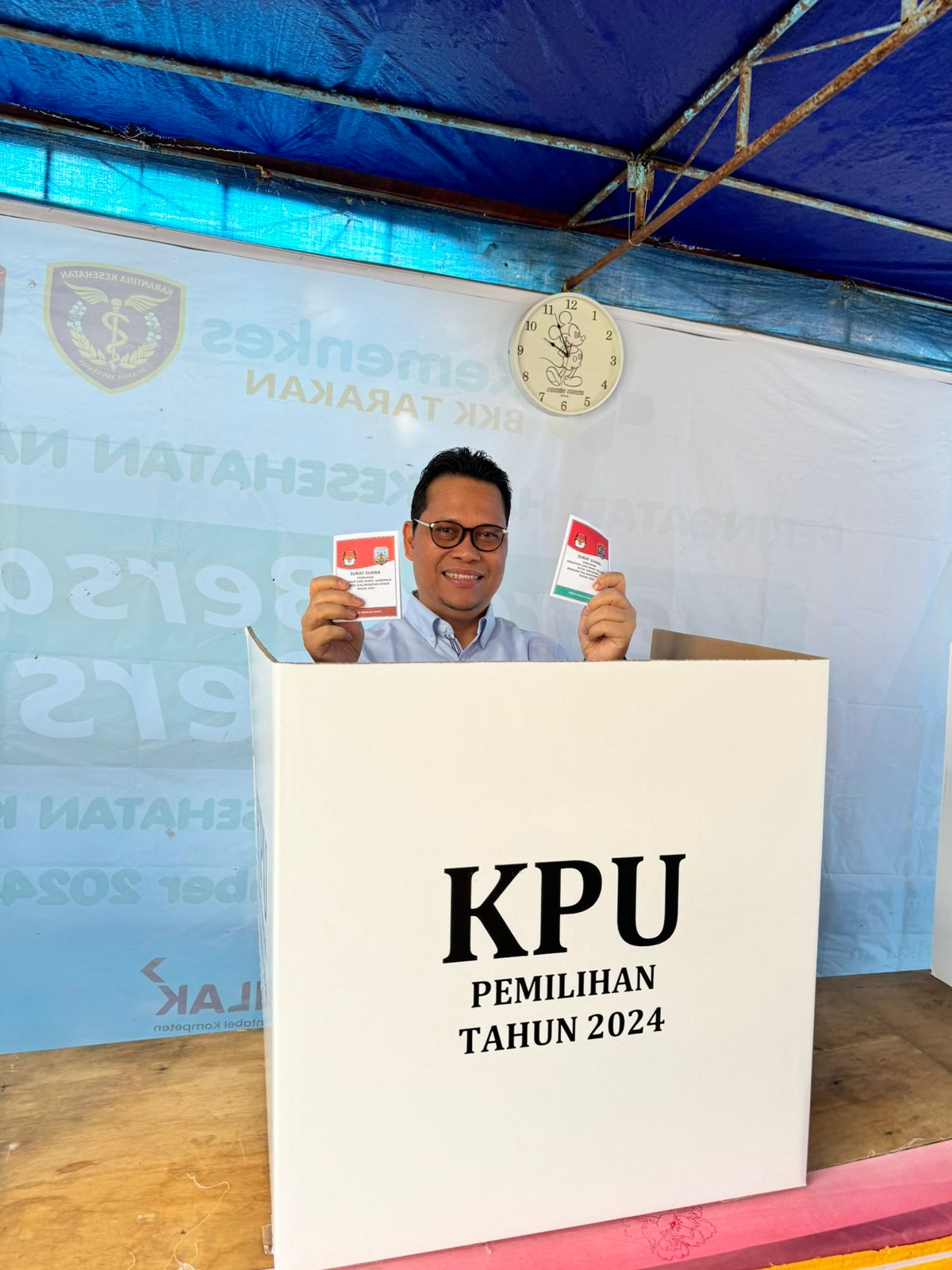 “Hari ini saya telah menyalurkan hak suara saya bersama istri, sebagai salah seorang warga Gunung Lingkas, Tarakan, Kaltara,” ungkap Hasan Basri, Rabu (27/11).