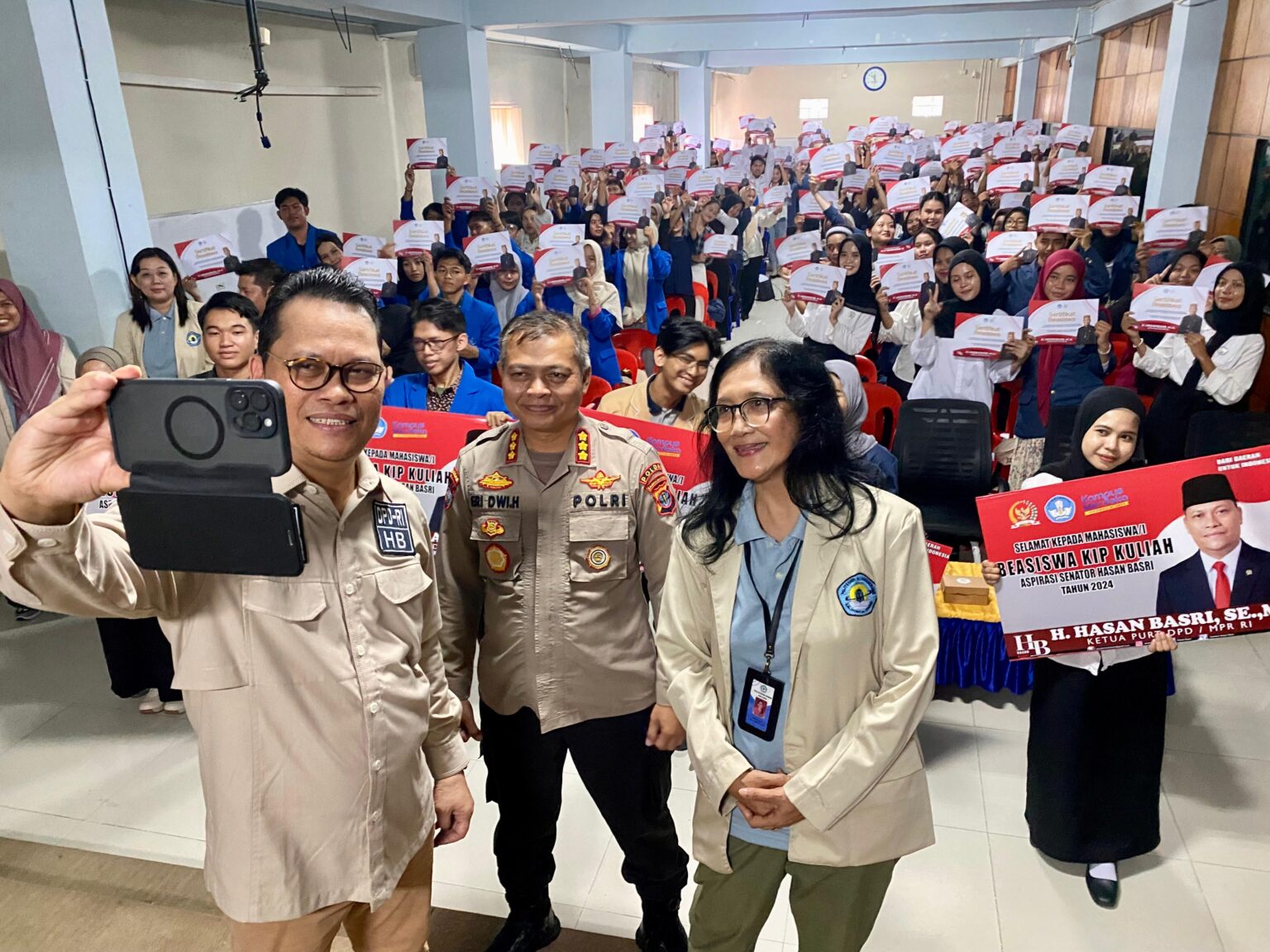 “Terimakasih atas sumbangsihnya Pak Hasan, masih sempat meluangkan waktu untuk memperhatikan generasi muda kita. Dan selamat kepada anak-anak kami yang mendapatkan beasiswa, tugas kalian hanya belajar dengan baik, pertahankan prestasi agar bisa dibiayai oleh negara hingga semester delapan,” tuturnya.