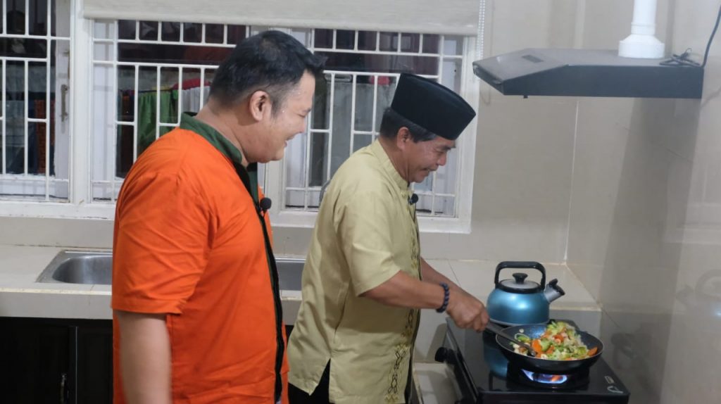 “Saya masak dulu ya. Tapi subuh ini saya akan memasakan sayur cap cay. Nanti silahkan dicicip,” kata Gubernur sembari mempersiapkan olahan bumbu.