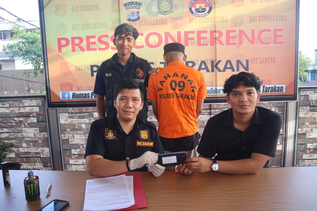 Kapolres Tarakan AKBP Ronaldo Maradona.T.P.P.Siregar, S.H.,S.I.K melalui kasat Reskrim Polres Tarakan, AKP Randhya Sakthika Putra, S.Tr.K.,S.I.K, menjelaskan kronologis Kejadian bermula saat pelapor, yang juga merupakan korban, sedang membeli minuman di salah satu gerai minuman di JL Yos Sudarso Kel. Selumit, Kec. Tarakan Tengah Kota Tarakan (Depan Bank BRI), korban meninggalkan handphone merk Poco X3 Pro di dasbor motor miliknya.
