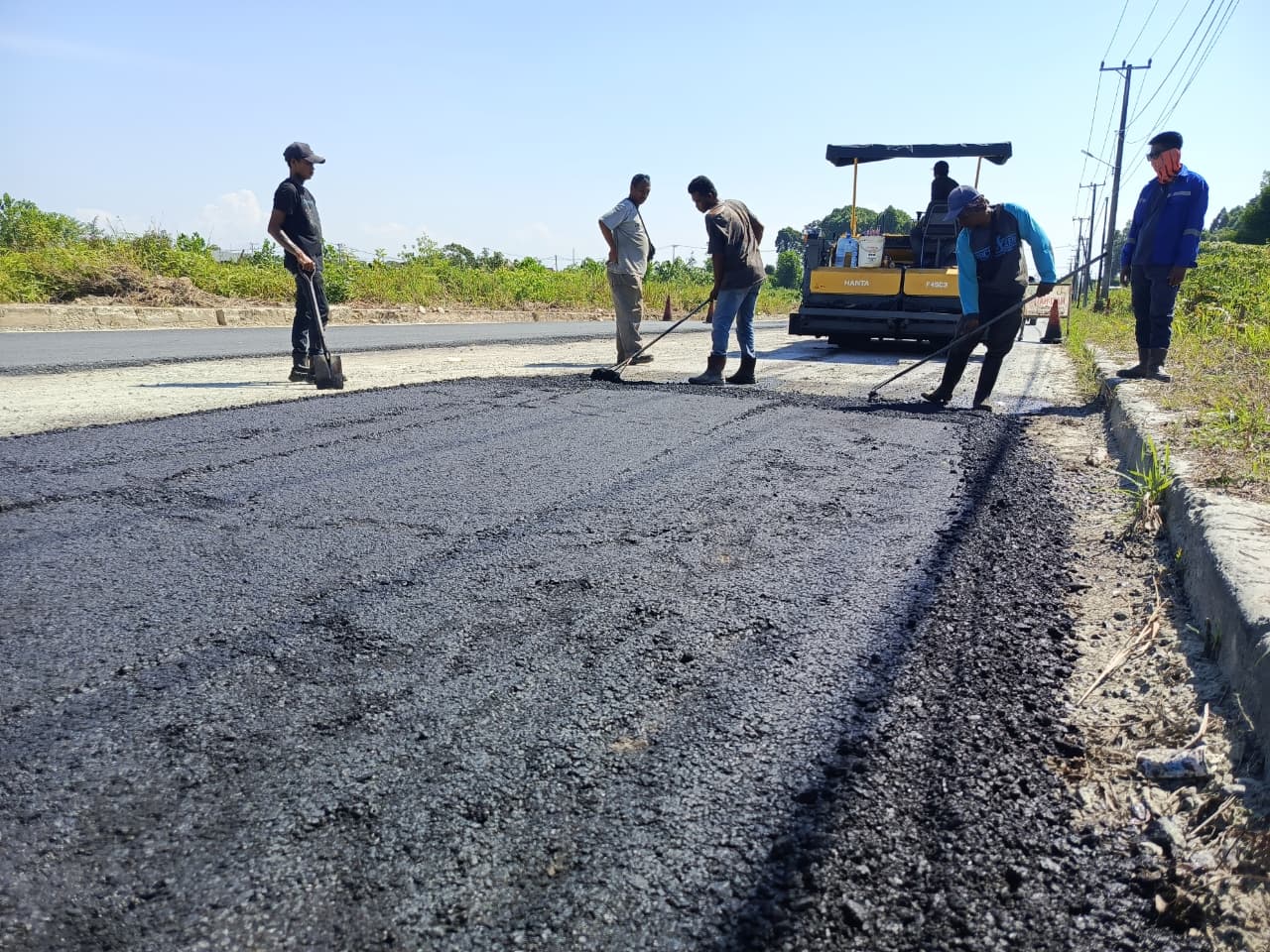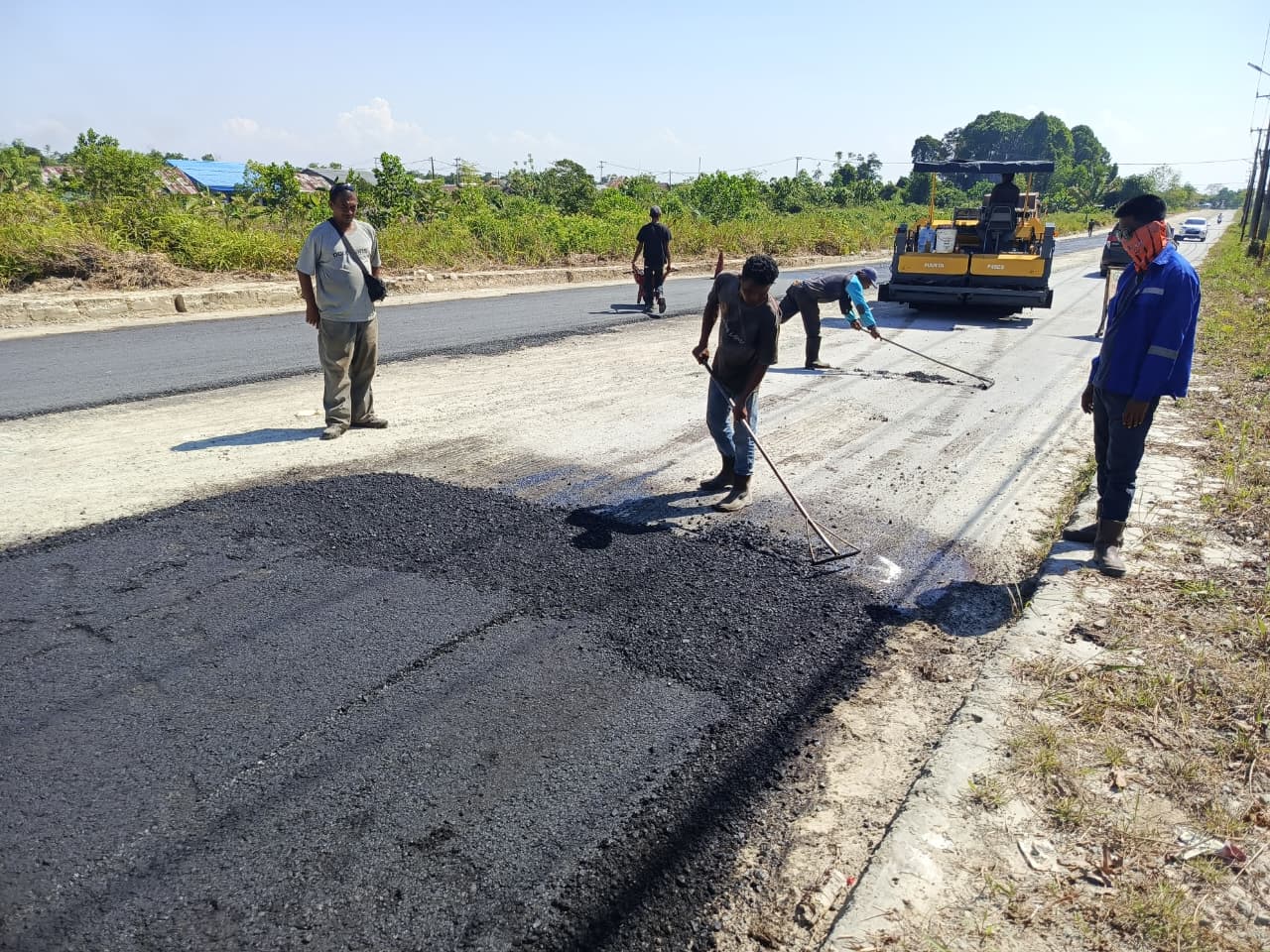 Pengerjaan pengaspalan jalan tersebut dilakukan dua tahap. Di mana tahap pertama sudah diselesaikan pada Februari 2024 lalu, dan tahap kedua telah rampung pada Agustus 2025. Dengan ketebalan pengaspalan jalan kedua sisi itu kurang lebih 6 sentimeter.