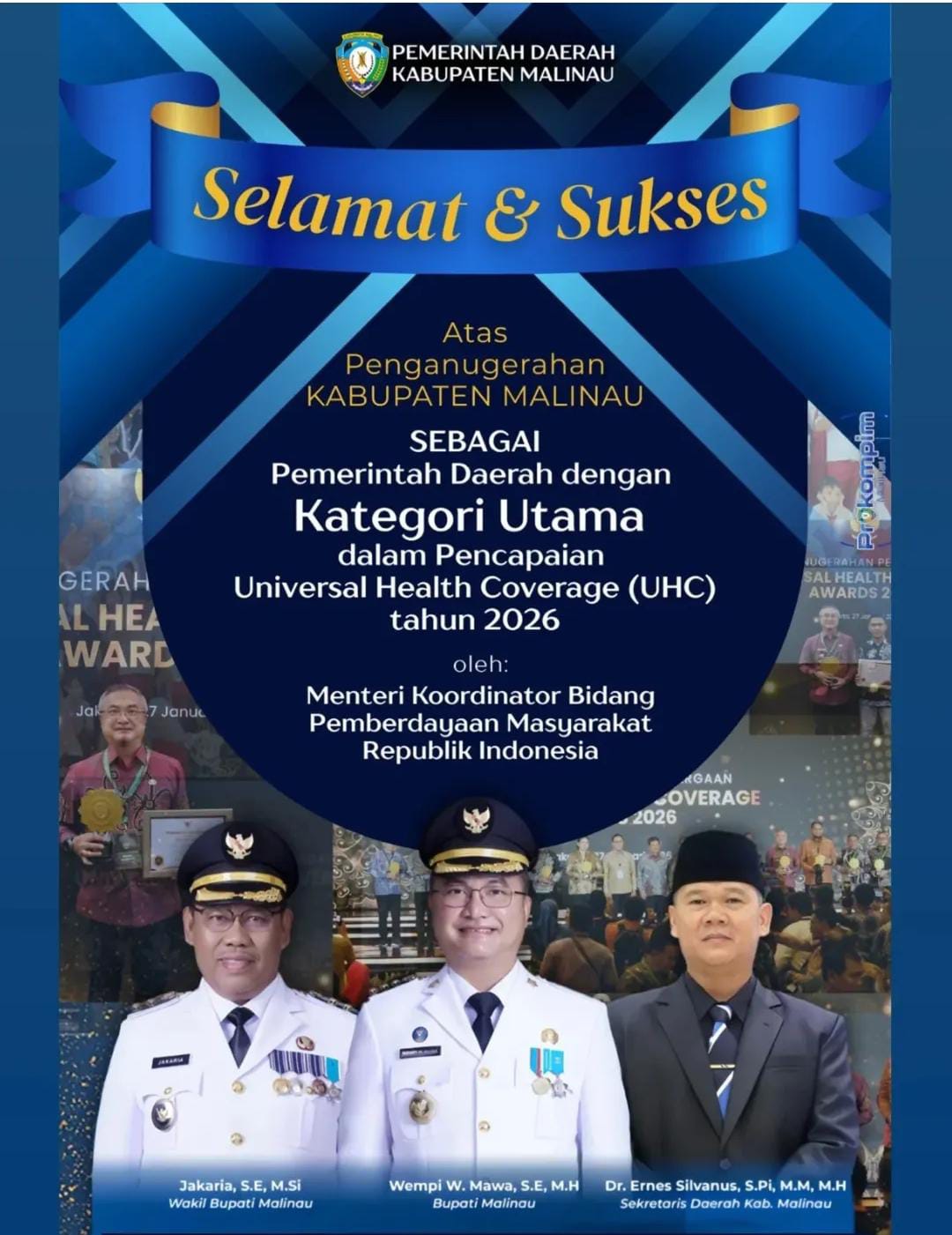 JAKARTA, INDONESIA – Kabupaten Malinau kembali menorehkan prestasi membanggakan di tingkat nasional dengan meraih Universal Health Coverage (UHC) Award Tahun 2026 kategori Utama. Penghargaan bergengsi tersebut diterima langsung oleh Bupati Malinau, Wempi W. Mawa, S.E., M.H., pada acara penganugerahan yang digelar di Jakarta, Selasa malam (27/1/2026).