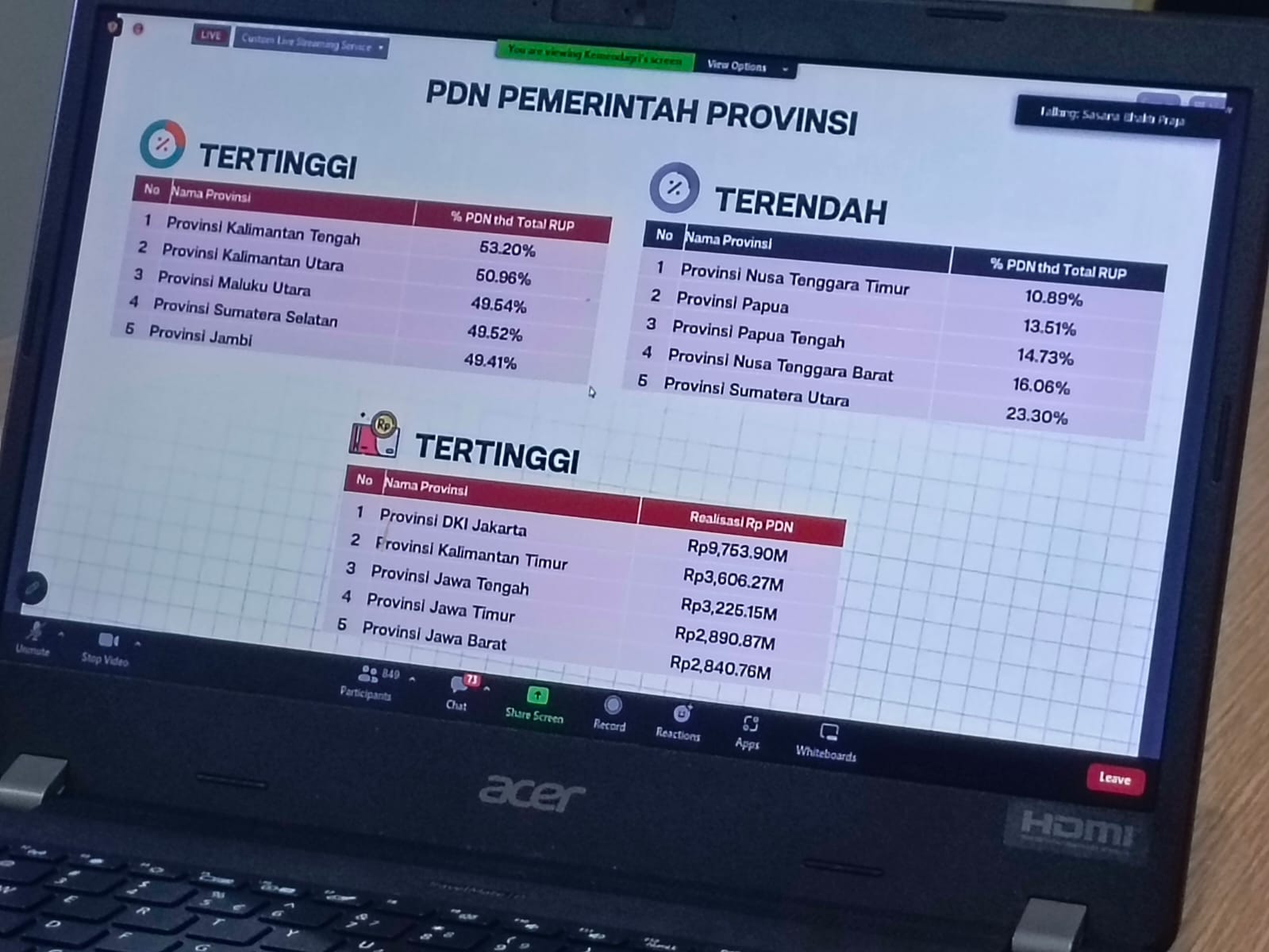 Sedangkan provinsi dengan Penggunaan PDN tertinggi secara nilai rupiah adalah DKI Jakarta, Kalimantan Timur (Kaltim), Jawa Tengah (Jateng), Jawa Timur (Jatim), dan Jawa Barat (Jabar).
