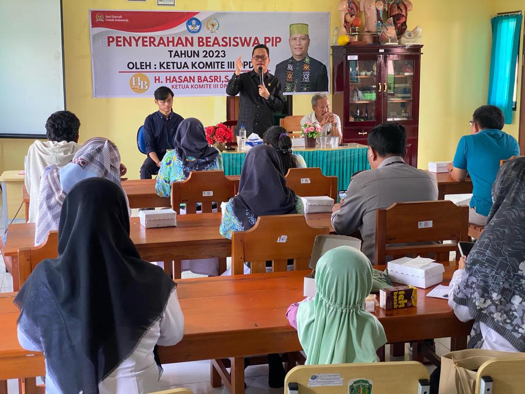 Selain memberikan Beasiswa, Senator Muda asal Kalimantan itu, Hasan Basri mensosialisasikan terkait beasiswa-beasiswa yang sudah disediakan pemerintah salah satunya PIP Sekolah.
