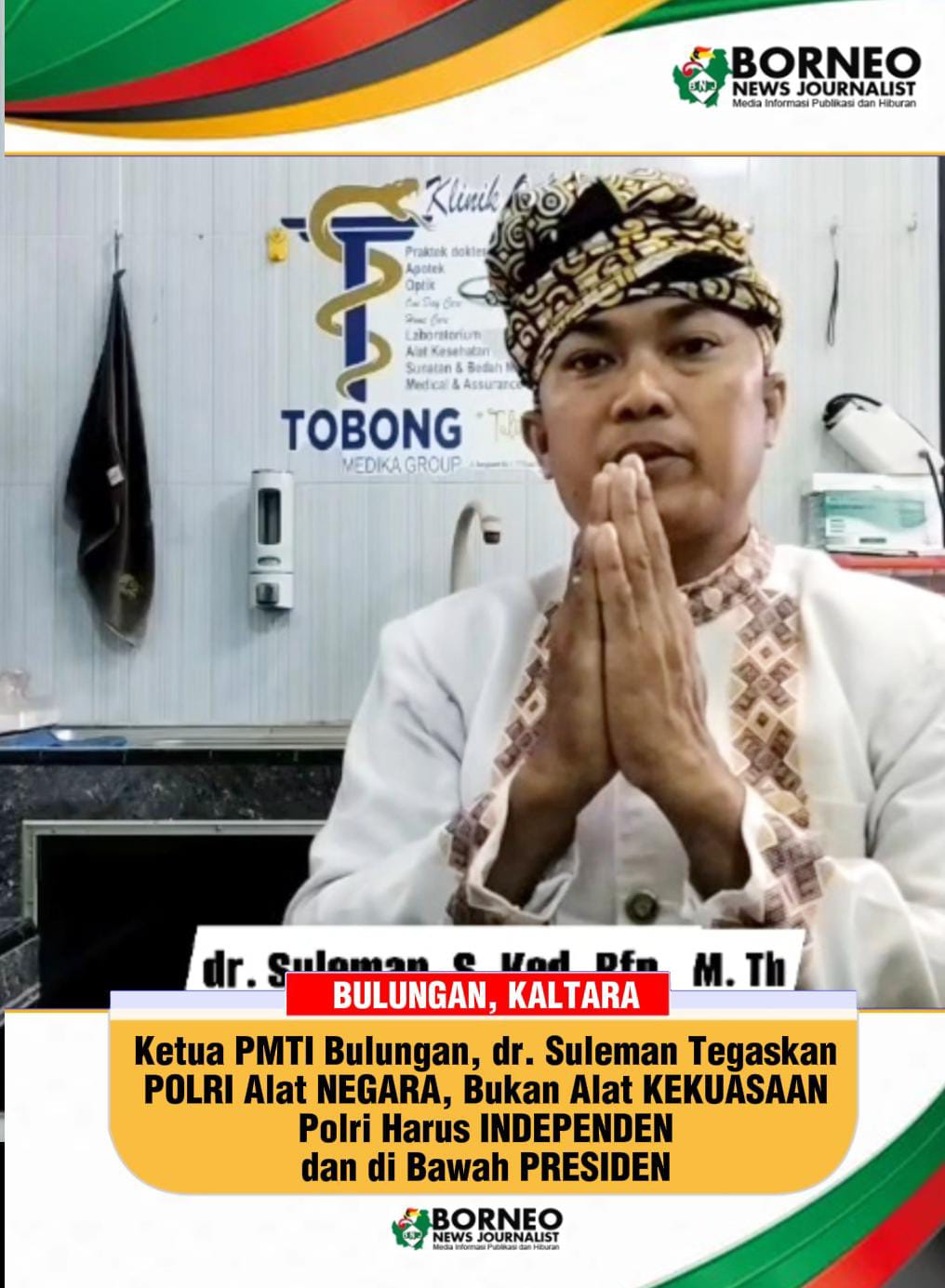 BULUNGAN, KALTARA – Ketua Perhimpunan Masyarakat Toraja Indonesia (PMTI) Kabupaten Bulungan, dr. Suleman, menyatakan sikap dukungan penuh terhadap pernyataan Kepala Kepolisian Negara Republik Indonesia (Kapolri) yang menegaskan bahwa institusi Polri tidak berada di bawah kementerian mana pun, melainkan langsung berada di bawah Presiden Republik Indonesia sesuai amanat konstitusi dan peraturan perundang-undangan.