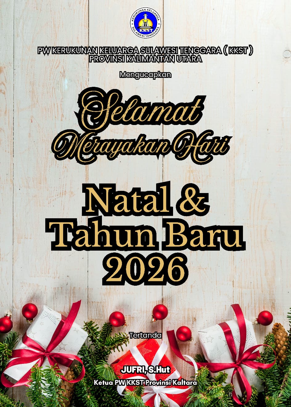 KALTARA – Pengurus Wilayah Kerukunan Keluarga Sulawesi Tenggara (PW KKST) Provinsi Kalimantan Utara menyampaikan ucapan Selamat Hari Raya Natal dan Tahun Baru 2026 kepada seluruh umat Kristiani serta masyarakat Kalimantan Utara yang merayakan.