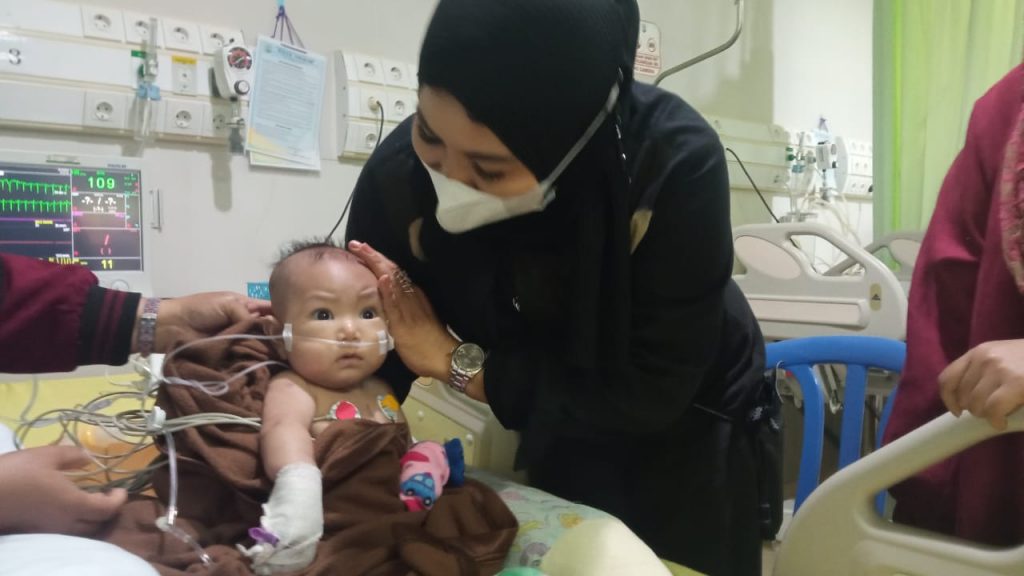 Ibu dari Abidzar sangat berterima kasih atas kunjungan dan dukungan dari Hj. Rachmawati Zainal yang turut membantu pemulihan bayi laki-lakinya.