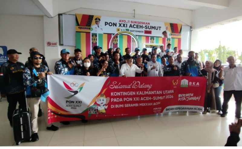 Kepala Sekretaris Komite Olahraga Nasional Indonesia (KONI) Kalimantan Utara, Arfiadi Meidansyah, memimpin kedatangan kontingen di Bandara Sultan Iskandar Muda, Aceh sekitar pukul 15.00 Wita. Penerimaan hangat dari panitia tuan rumah menyambut kedatangan kontingen Kaltara di bandara.