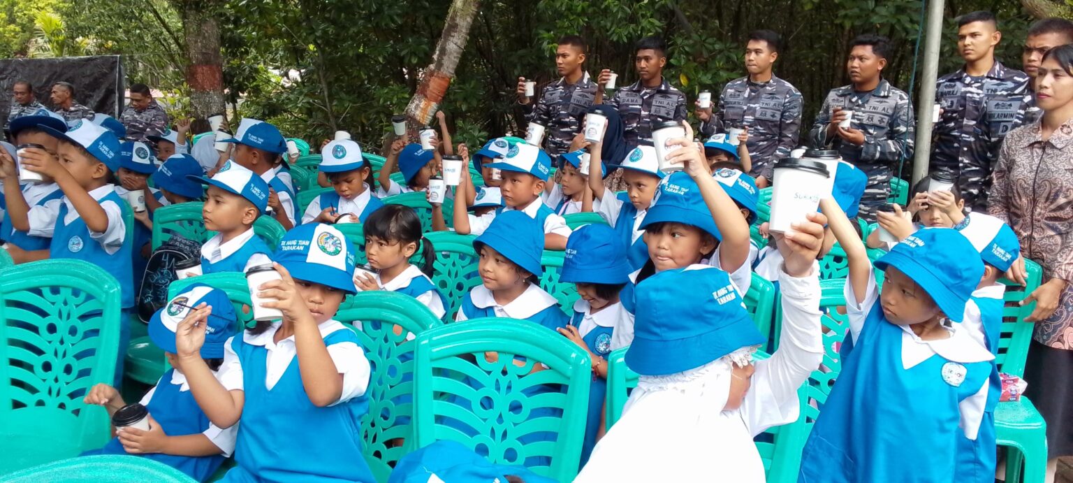 Tarakan – Pangkalan Utama TNI Angkatan Laut (Lantamal) XIII Tarakan dan BKIPM Tarakan melaksanakan uji coba pemberian susu ikan kepada murid-murid TK di Markas Satuan TNI Angkatan Laut XIII Tarakan. Kegiatan ini diselenggarakan secara serentak di seluruh wilayah Indonesia. Selasa (29/10/24)