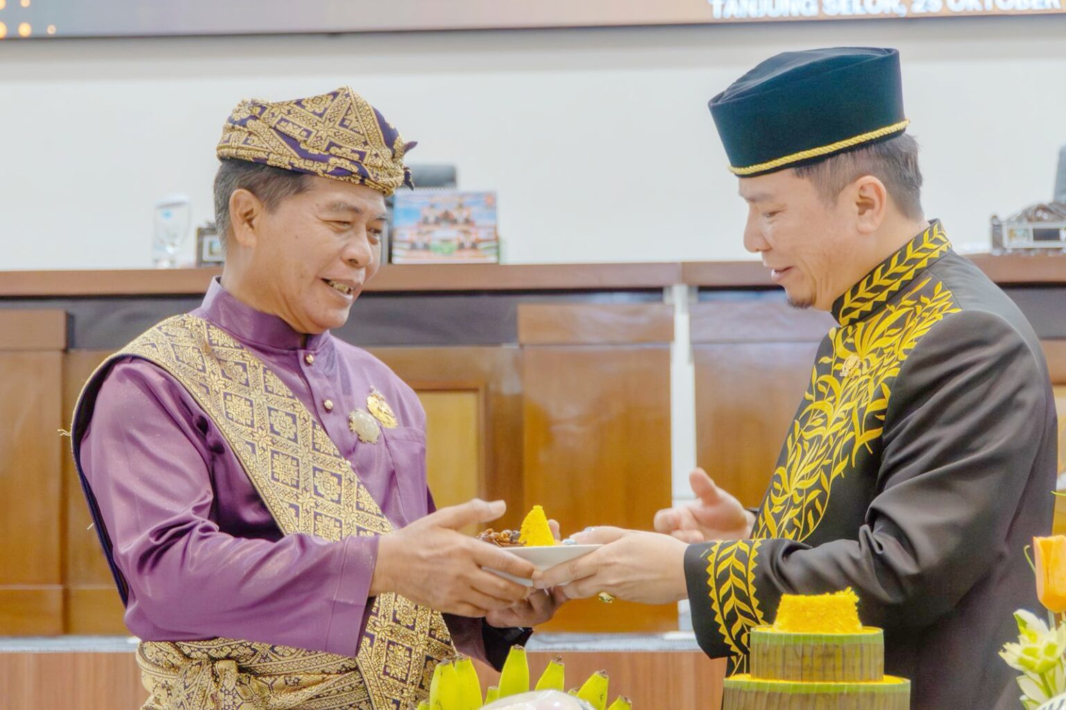 Acara dirangkaikan dengan penyerahan secara simbolis tumpeng dan nasi rasul oleh Ketua DPRD Kaltara, Achmad Djufrie kepada Gubernur Zainal, dan Wakil Ketua DPRD Kaltara kepada Wagub Ingkong, beserta jajaran Forkopimda dan tokoh masyarakat. (dkisp)
