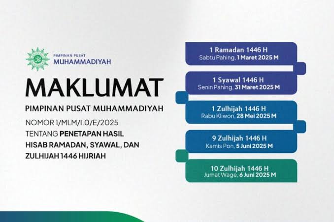 Dengan penetapan ini, Muhammadiyah mengimbau umat Islam yang mengikuti metode hisab wujudul hilal untuk mempersiapkan ibadah Ramadan serta menyambut Idul Fitri dan Idul Adha dengan penuh khidmat.