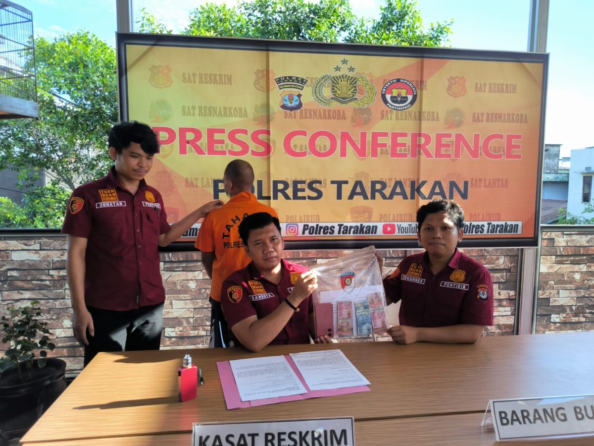 Kapolres Tarakan AKBP Ronaldo Maradona.T.P.P.Siregar, S.H.,S.I.K melalui Kasat Reskrim AKP Randhya Sakthika Putra, S.T.K.,S.I.K.,M.H saat konferensi perss bersama awak media pada Kamis, 09 November 2023, menguraikan kronologis kejadian “pencurian yang dilakukan oleh “YP” (44 tahun ) terjadi pada hari jumaat Pada hari Jumat 27 Oktober 2023 pukul 10.00 wita, Pelapor saat itu baru bangun tidur, pelapor menyadari barang-barang miliknya tidak lagi berada pada tempat semula, Pelapor kemudian mengecek barang berharaga miliknya, dan benar saja Tas selempang yang berisikan uang tuna R.5.550.000, – (Lima juta lima ratus lima puluh ribu rupiah), Kartu ATM Bank BRI,KTP, Kartu BPIS, Kunci Toko dan HP OPPO A57 berwarna Glowing Green/Hijau Menggunakan Case Warna Pink ternyata telah raib.”beber kasat reskrim.