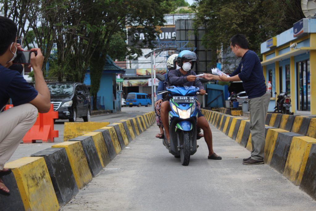 Melihat kondisi ini, sejumlah organisasi yang terdiri dari Karang Taruna, KNPI, PWI, SMSI dan Coffee Lovers yang tergabung kedalam Forum Organisasi membagikan masker kepada masyarakat guna tetap memastikan masyarakat tetap menggunakan masker saat beraktivitas.