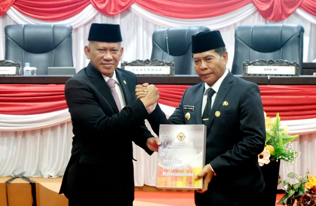 Laporan Hasil Pemeriksaan (LHP) BPK RI terhadap LKPD Provinsi Kaltara diberikan langsung oleh Anggota VI BPK RI, Dr Pius Lustrilanang, S.IP., M.Si., CFrA., CSFA kepada Gubernur Kaltara, Drs H Zainal A Paliwang SH, M.Hum pada Rapat Paripurna di Ruang Sidang Dewan Perwakilan Rakyat Daerah (DPRD) Kaltara, Senin (23/5/2022).