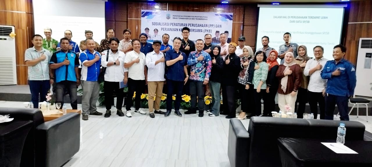 TARAKAN, KALTARA – Dinas Tenaga Kerja dan Transmigrasi (Disnakertrans) Provinsi Kalimantan Utara menggelar Sosialisasi Peraturan Perusahaan (PP) dan Perjanjian Kerja Bersama (PKB) pada 28–29 November 2025 di Hotel Duta, Jalan Yos Sudarso, Kota Tarakan.
