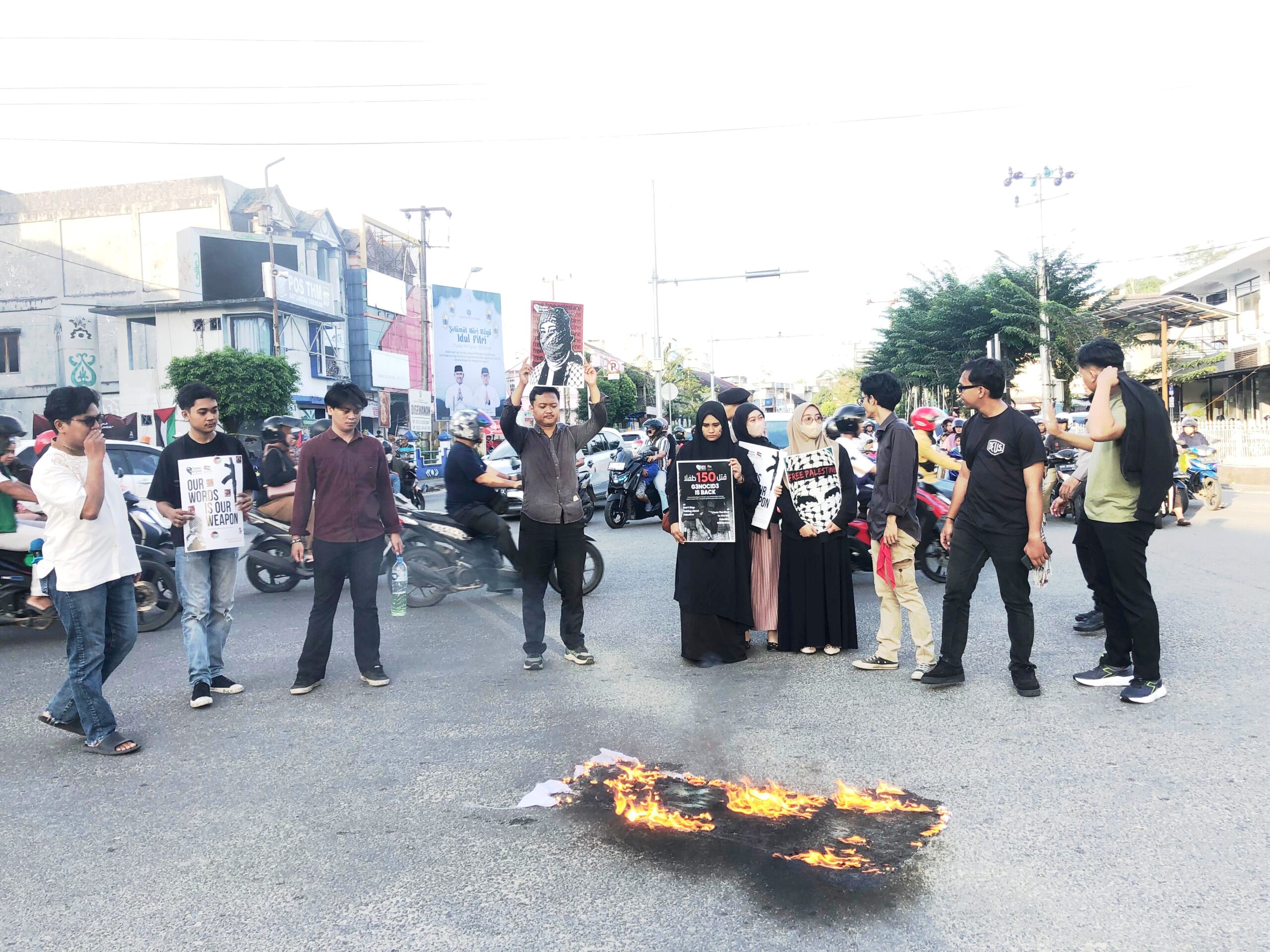 Di tengah kegiatan, aksi simbolik berupa pembakaran bendera Israel dilakukan sebagai bentuk penolakan terhadap tindakannya yang dinilai menindas Palestina.