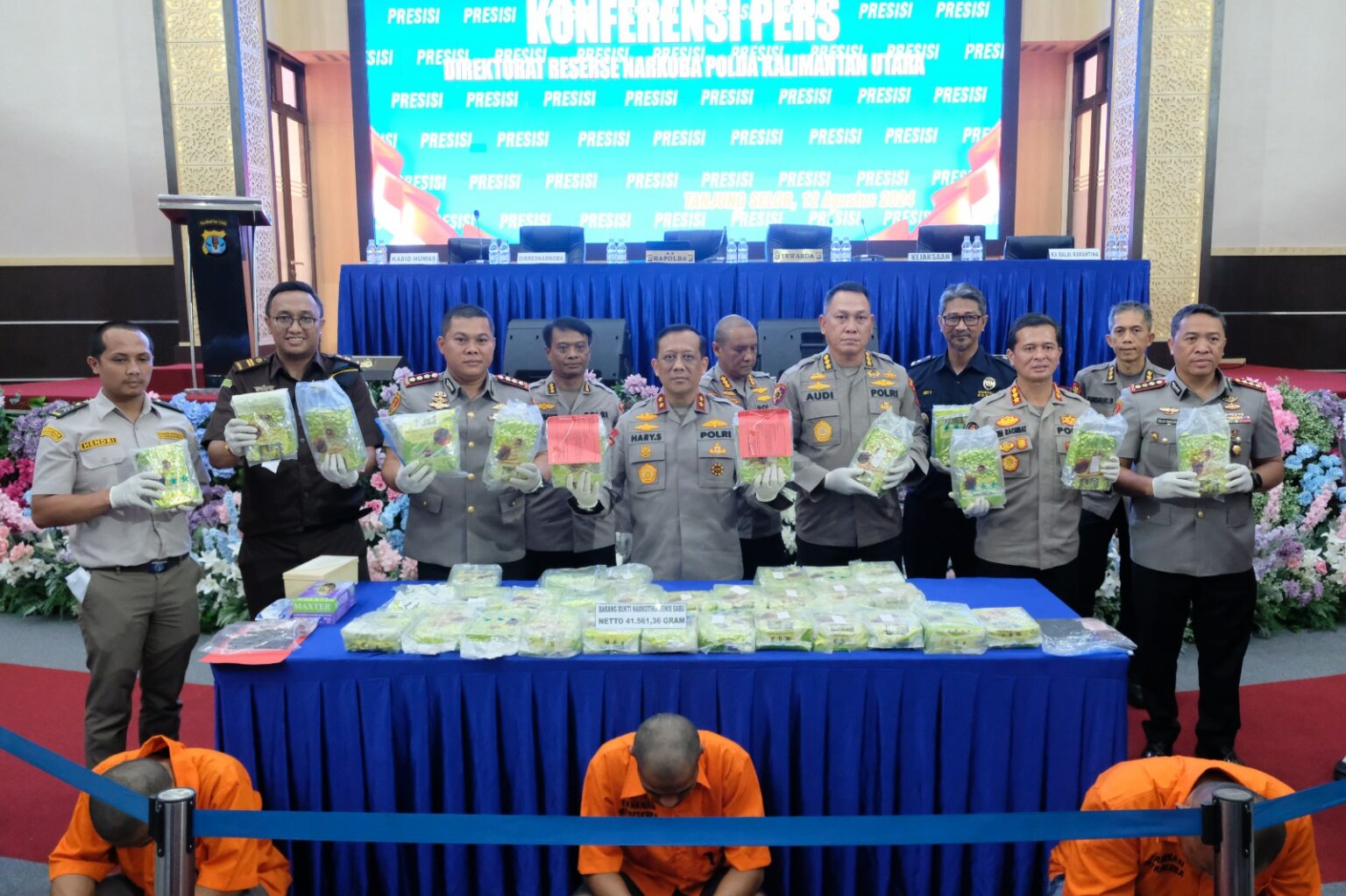 Bulungan – Polda Kalimantan Utara melaksanakan Konferensi Pers Tindak Pidana Narkoba Jenis Shabu di Gedung Rupatama Kayan, Senin (12/08/2024)