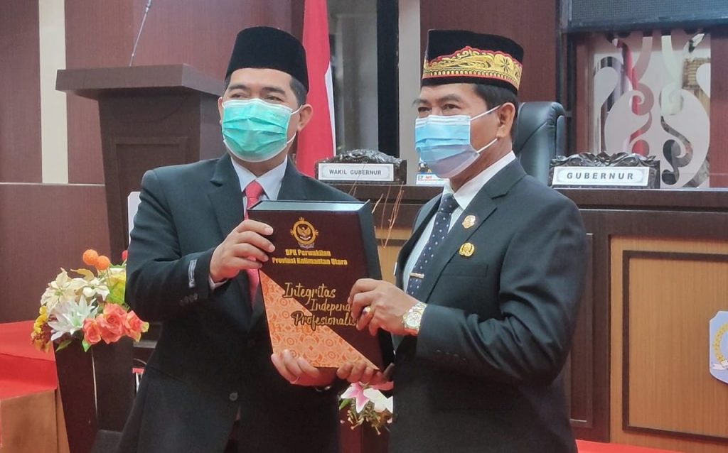 Predikat opini WTP diserahkan langsung oleh Kepala BPK RI Perwakilan Kaltara Agus Priyono kepada Gubernur Kaltara Zainal A.Paliwang, didampingi Wakil Gubernur (Wagub) Yansen TP serta disaksikan Ketua DPRD Kaltara Norhayati Andris dan sejumlah anggota dewan maupun Forkopimda.