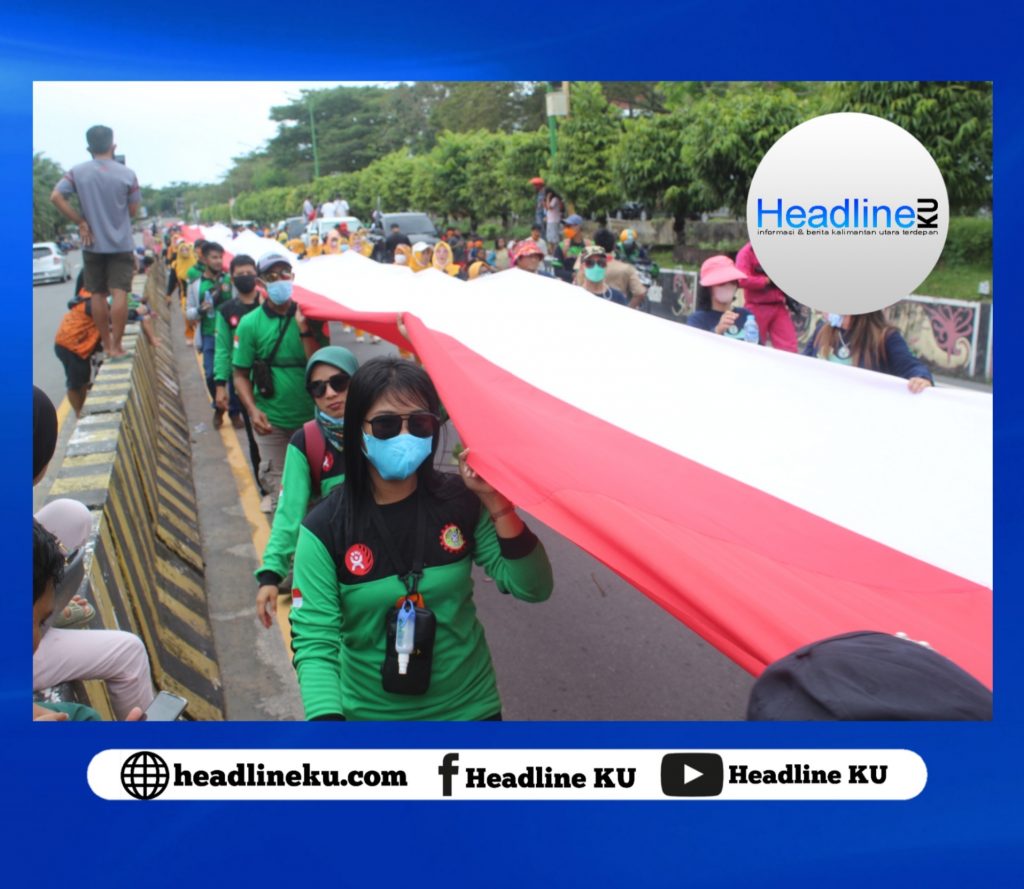 TARAKAN – Dalam rangka merayakan semarak Hari Ulang Tahun (HUT) Kota Tarakan yang ke 24 tahun. Berbagai komunitas yang tergabung dalam aliansi 1 bendera melakukan pembentangan sang saka merah putih sepanjang 500 meter yang diarak dari Bandara Juwata Tarakan menuju Jalan Yos Sudarso Kelurahan Sebengkok Tarakan Barat Pada Minggu, (19/12/2021).