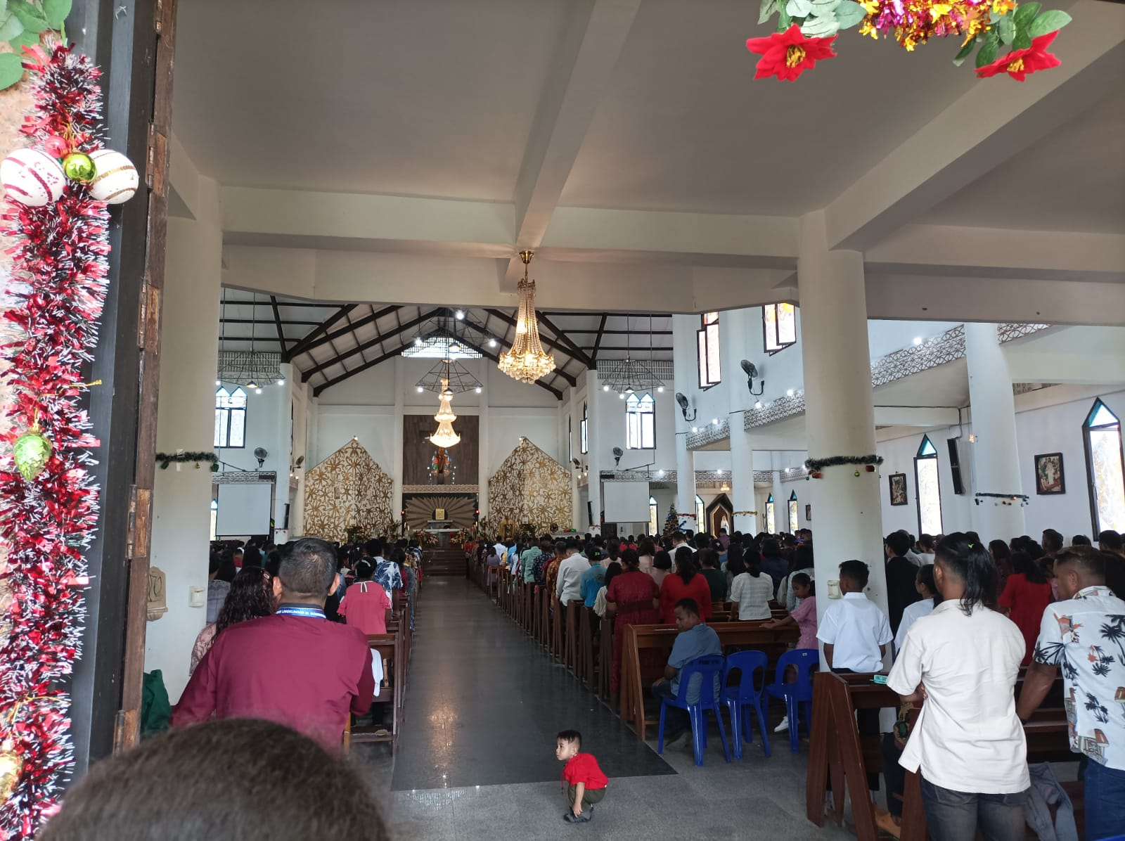TARAKAN – Ribuan umat Khatolik di gereja Santa Maria Imakulata melaksanakan ibadah Misa Natal pada Senin (25/12/2023). Meski jumlah jemaat membludak, namun pelaksanaan ibadah Natal tahun ini berjalan aman dan sama seperti tahun sebelumnya.