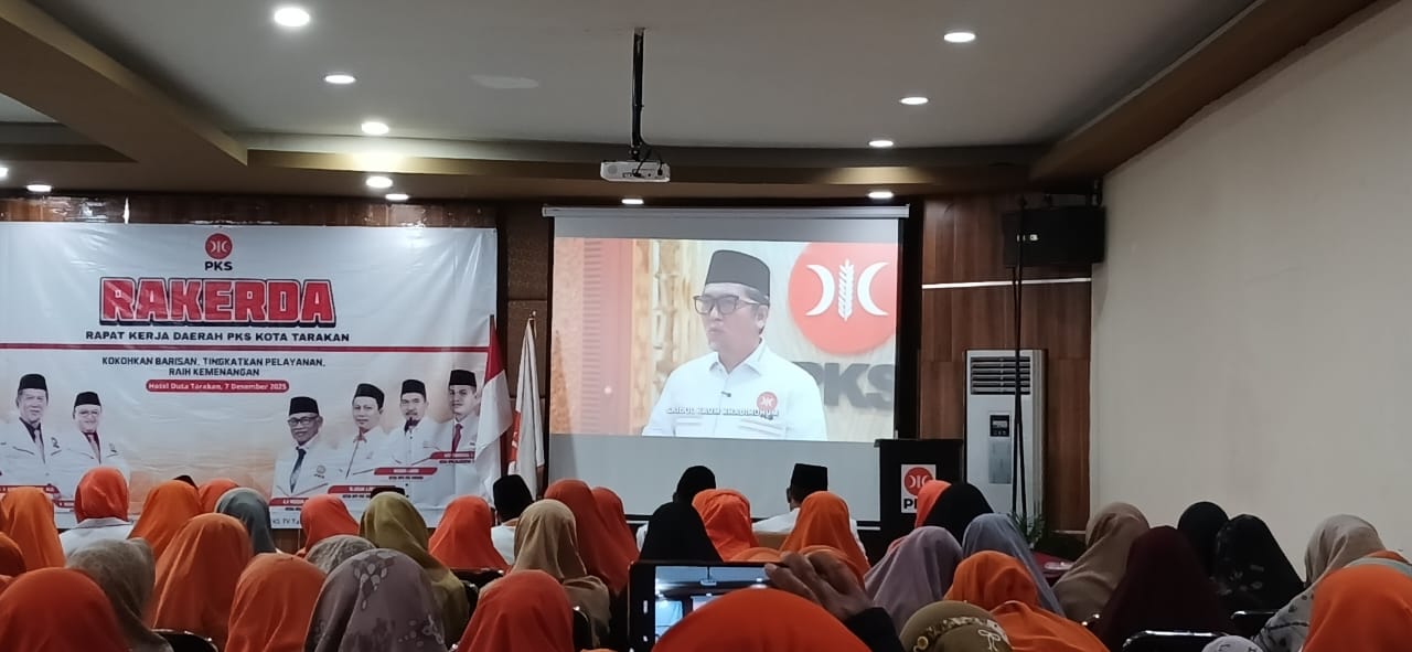 TARAKAN – DPD Partai Keadilan Sejahtera (PKS) menggelar Rapat Kerja Daerah (Rakerda) pada Minggu (7/12) yang berlangsung di Hotel Duta Tarakan. Dalam agenda ini, Presiden PKS, Dr. H. Almuzammil Yusuf, menyampaikan pesan pada sambutannya melalui pesan video sebelum rakerda dimulai.