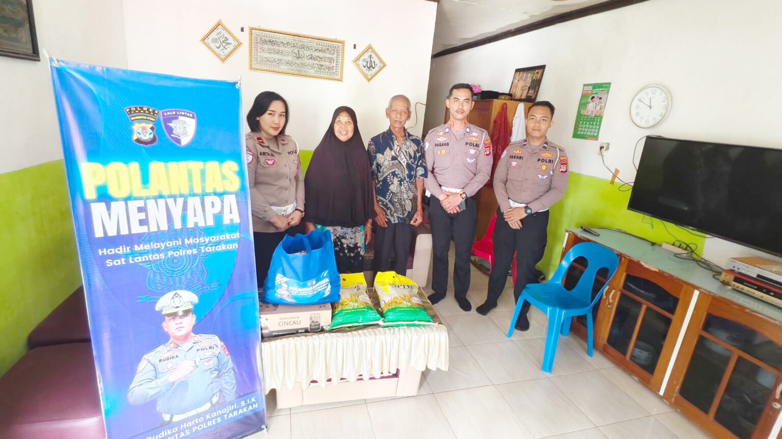 Kegiatan pertama program ini digelar di rumah salah satu warga, tepatnya di Jalan Rawasari, Gang Rambutan, Kelurahan Karang Harapan, Kecamatan Tarakan Barat. Dalam kegiatan ini, personel Satlantas yang dipimpin langsung oleh Kasatlantas Polres Tarakan, AKP Rudika Harto Kanajiri, S.IK, menyerahkan bantuan sembako kepada keluarga Warsono. Jumat(05/09/2025).