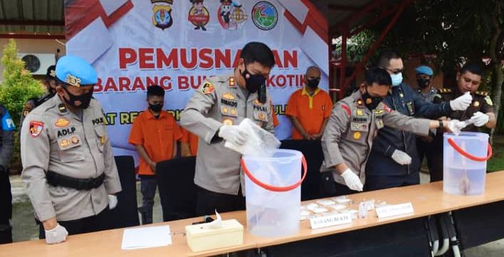 TANJUNG SELOR – Barang bukti narkotika jenis sabu seberat 1,79 kilogram hasil empat kali tangkapan Satresnarkoba Polres Bulungan pada bulan Juli hingga Agustus 2022, kini dimusnahkan.