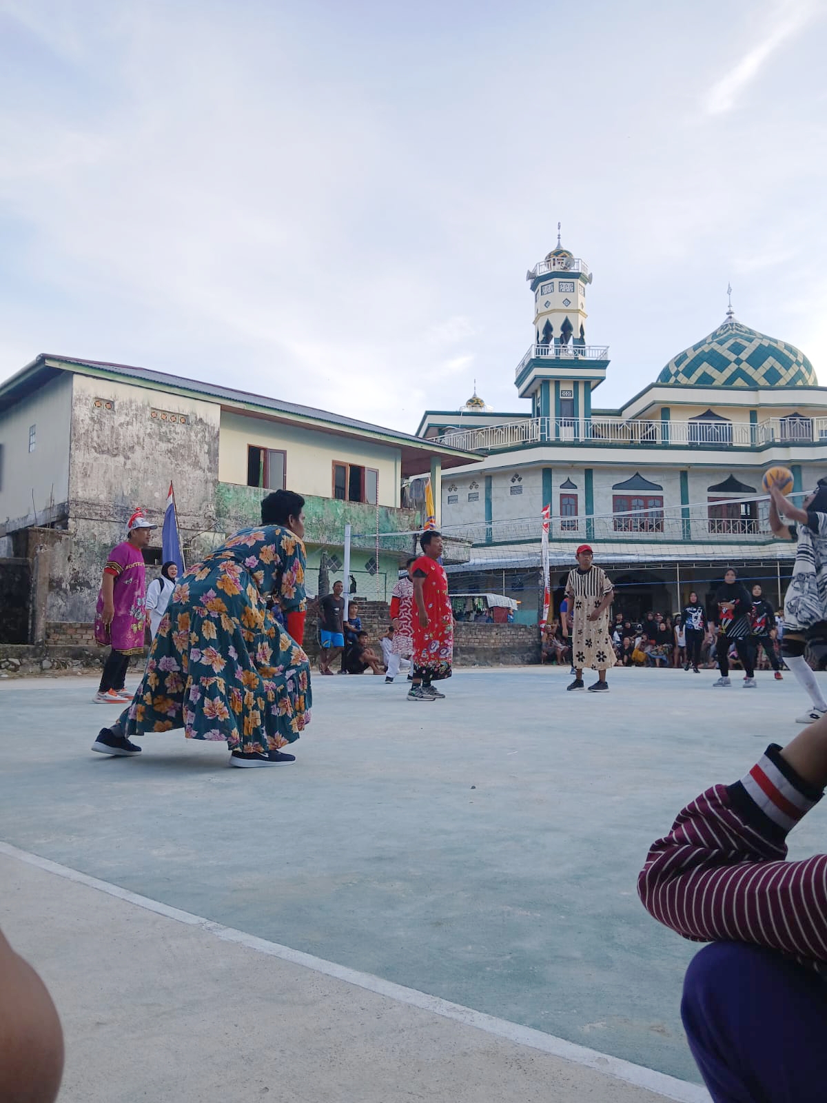 Pertandingan berlangsung seru sejak awal, dengan dukungan meriah dari warga yang memadati lapangan. Namun yang paling menyita perhatian adalah momen unik saat para peserta dari kalangan bapak-bapak tampil bermain voli mengenakan kostum daster. Penampilan nyentrik ini berhasil mengundang gelak tawa penonton sekaligus menambah semarak suasana.